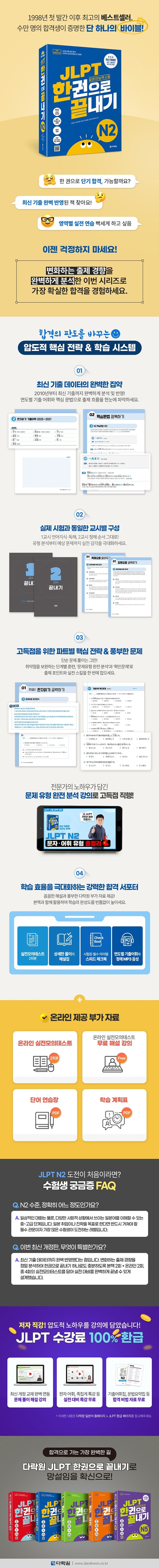 - JLPT(일본어능력시험) N2 합격을 목표로 전 영역을 한 권으로 효율적으로 끝내고 싶은 학습자