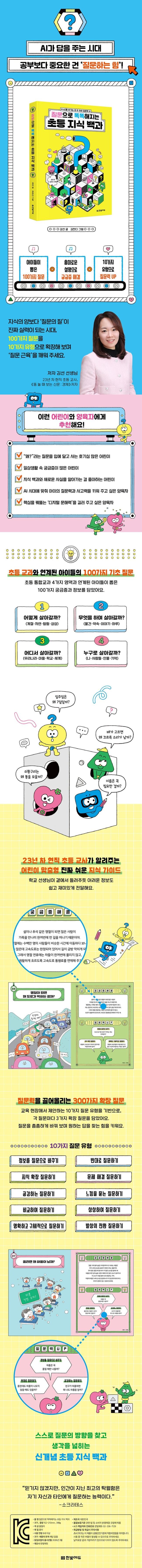 기존의 지식 백과 도서가 아이들의 질문에 대해 단편적인 정답을 전달하는 데 그쳤다면, 《질문으로 똑똑해지는 초등 지식 백과》는 하나의 지식을 배울 때 다양한 관점에서 바라보도록 돕는 10가지 질문 유형을 통해, 아이들이 스스로 질문의 방향을 설정하고 생각의 폭을 넓힐 수 있도록 구성한 책이다. 아이들은 자신의 질문을 다른 방향으로 바꿔 보며 ‘질문의 주인’이 되는 경험을 하게 되고, 정답을 외우는 아이가 아니라 스스로 질문을 던지며 답을 찾아가는 아이로 성장하는 데 가장 기초가 되는 책이다. AI 시대 핵심 역량으로 꼽히는 , 즉 미래 사회가 원하는 인재로 성장해 가는 데 가장 기초가 되고, AI 시대 핵심 역량으로 꼽히는 ‘질문력’을 기르는데 가장 적합한 신개념 초등 지식 백과이다.