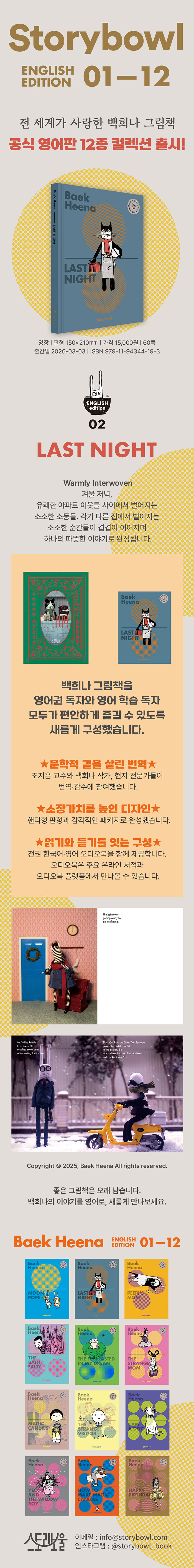Storybowl’s "Heena Baek Picture Book English Edition" is a premier collection featuring 12 of the author’s most celebrated works, including Moon Sherbet, Long Arm Grandma (The Bath Fairy), and Magic Candies, now available in their official English versions.