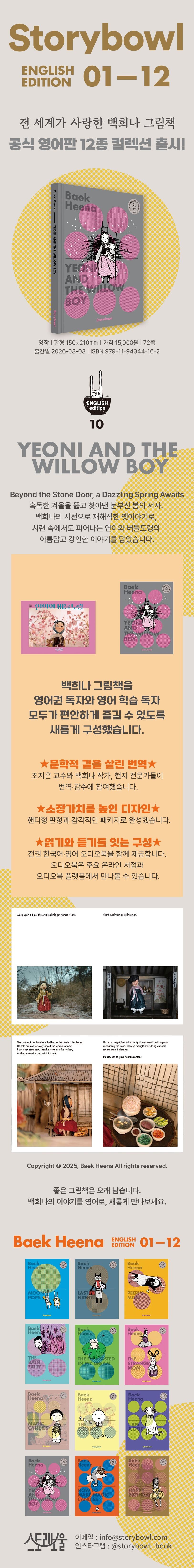 Storybowl’s "Heena Baek Picture Book English Edition" is a premier collection featuring 12 of the author’s most celebrated works, including Moon Sherbet, Long Arm Grandma (The Bath Fairy), and Magic Candies, now available in their official English versions.