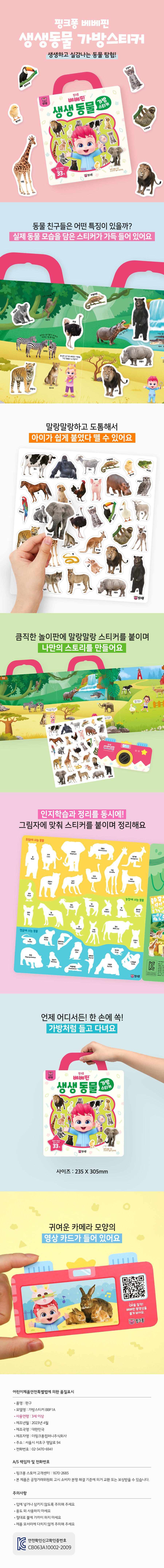 핑크퐁 베베핀 가방 스티커 : 생생 동물 스티커북