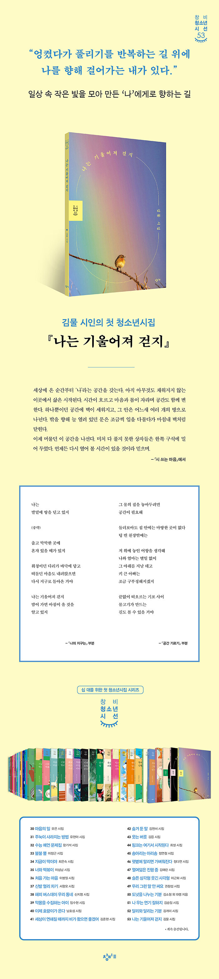 ‘창비청소년시선’ 시리즈의 쉰세 번째 권이자, 2016년 『어린이와 문학』에 동시가 추천 완료되고 2018년 『창비어린이』 동시 부문 신인문학상에 당선되어 작품 활동을 시작한 김물 시인의 첫 청소년시집이다.