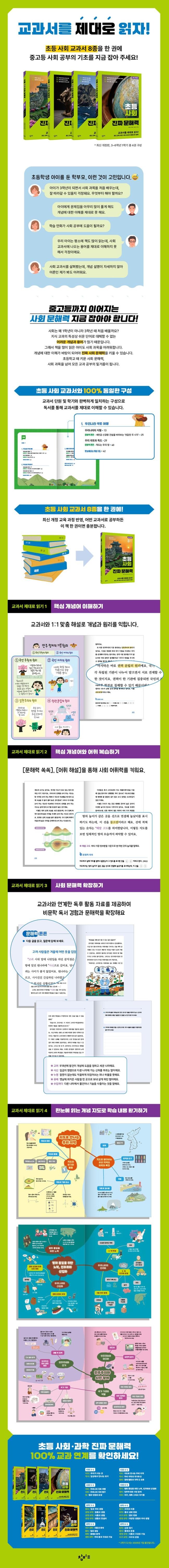 사회는 개념을 외우는 것이 아니라 이해하는 것이 중요합니다. 그래서 필자들은 해당 학년의 수업에서 학생들이 어려워하는 부분을 모아 생생한 사례로 풀어냈습니다. 아이들은 『초등 사회 진짜 문해력』를 읽다 보면 왜 그런 개념이 나왔는지 자연스럽게 스스로 생각하고, 내용을 이해할 수 있을 것입니다. 어른이 보기에는 뭐 이런 것까지 알려주어야 하는가라는 의문을 가질 수 있습니다. 하지만 아이들은 기초적인 내용이더라도 학문적으로는 모두 처음 배우는 것이기에 평소 살아가는 생생한 생활 이야기 속에서 배우는 것이 가장 바람직합니다. 시장과 마트 등에서 물건을 사고, 스마트폰을 사용하고, 교통수단을 이용하는 등등 생생한 이야기들이 바로 사회이기 때문입니다. 즉, 아이들이 살아가는 세상 이야기와 또 재밌는 역사 이야기 등을 나누면서 열어 간 수업을 교과서 진도에 맞추듯 학년과 학기에 맞춰 책으로 펼쳐 냈습니다. 이 책과 함께하면 사회 교과서를 읽을 때 살아 숨 쉬는 세상과 마주할 수 있을 것입니다.