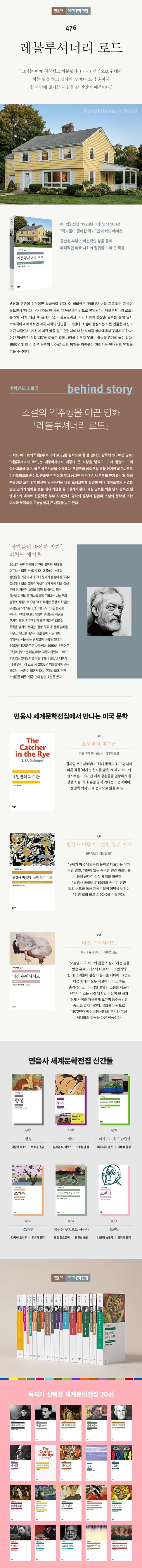 이름에 적용된 아이러니와 신분상의 ‘타락’이란 이들 주제는 모두 예이츠가 1950년대의 미국을 이전보다 못한 사회로 간주하고 있음을 암시한다. 이전과 비교해 떨어지는 품질의 어떤 것은 궁극의 결과라 할 수 없으며, 따라서 이상적이라 할 수도 없다. 그러므로 적어도 1950년대 미국 사회는 혁명가들이 꿈꾸었던 그런 사회는 아니다. 이 소설 이후 1960년대 미국 작가들은 미국의 역사를 적극적으로 재해석하고, 혁명가 ‘국부’들의 이상을 소환하며 현실을 직설적으로 비판하는 ‘반체제적’ 또는 ‘체제 저항적’인 작품들을 쏟아낸다. 예이츠는 『레볼루셔너리 로드』에서 그런 적극적인 모습을 보여 주지는 않는다. 다만 1950년대 중산층의 삶에 깃든 어리석고 불합리한 면을 냉정하게, 그러나 연민의 정으로 그려 내는 과정에서 ‘미국의 꿈’이 구현됐다는 현재 사회가 미국을 건설할 때의 꿈이 아닐 수 있다는 사실을 암시하는 정도에 그친다. 그런 점에서 이 소설은 1960년대 미국 주류 문학이 나아갈 길의 방향을 어렴풋이 가리키는 안내판의 역할을 한다고 볼 수 있다.
