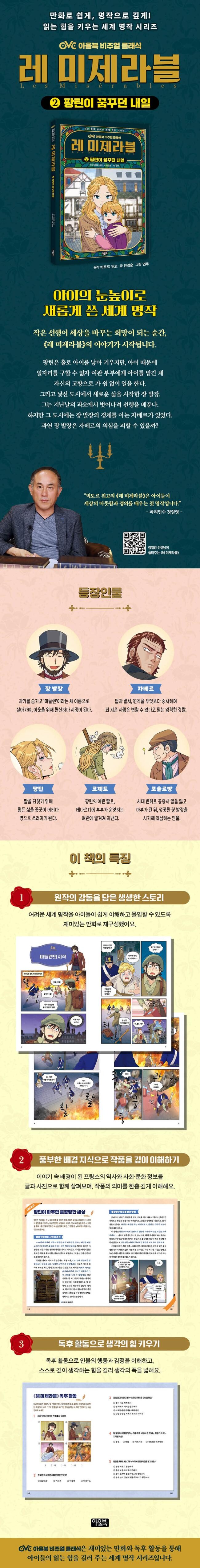 만화로 재구성한 〈레 미제라블〉은 그림과 함께 이야기를 읽을 수 있어 초등 저학년부터 고학년까지 재미있게 고전 문학을 접할 수 있다. 원전의 이야기를 충실히 담아 빅토르 위고가 전하고자 한 감동과 메시지를 그대로 느낄 수 있다.