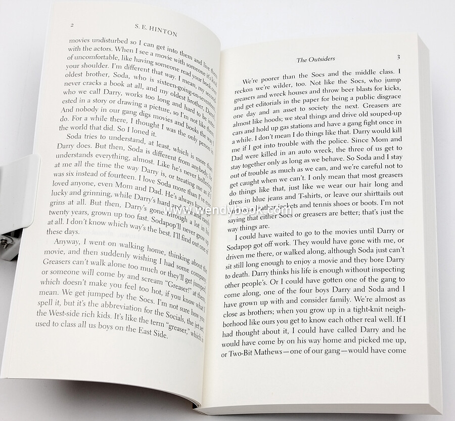 저자 S. E. Hinton에게 마거릿 A.상의 첫 수상자라는 영광을 안겨준 《The Outsiders》입니다. 경제력이 곧 계급이 된 사회, 하지만 그 속을 살아가는 아이들은 저마다 괴로움을 호소하고 있습니다. 잘못된 사회구조에 대한 비판과 함께 청소년들의 당면한 고민과 갈등을 보여주는 내용인데요, 짜임새 있는 튼실한 구조로 뉴 리얼리즘(New Realism)이라는 새 지평을 열었다는 찬사를 받고 있는 작품입니다.