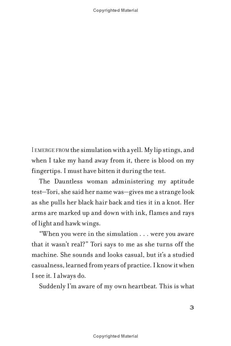 그리고 트리스가 돈 트리스로 온 후 2주일 동안 그의 주변에서 일어났던 상황을 Four의 시각으로 보여주는 Divergent 시리즈의 프리퀄이자 번외편입니다.