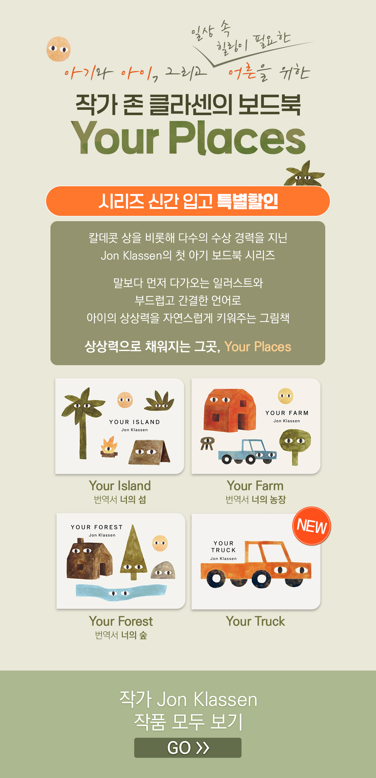 신간 입고 기념) 작가 Jon Klassen의 첫 보드북 Your Places 시리즈 5% 추가할인