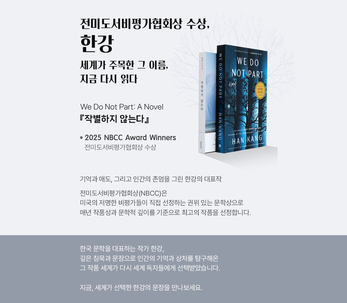 축! 전미도서비평가협회상(NBCC) 수상! 한강의 '작별하지 않는다'