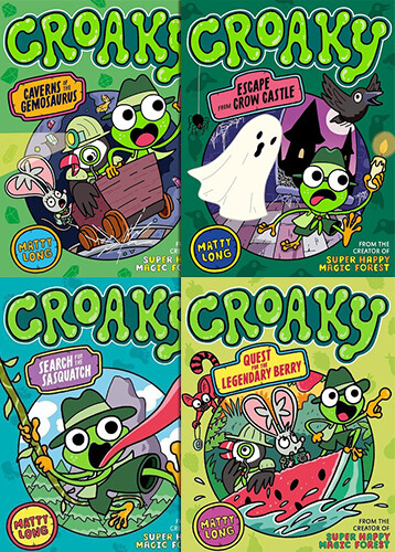 거친 모험을 꿈꾸는 작은 개구리 Croaky. TV 속 유명한 탐험가처럼 악어떼를 헤치고 다니고 싶은 소년은 모험을 꿈꾸는데... 그의 일상 속에 어떤 모험이 찾아들까? 'Super Happy Magic Forest'의 작가 Matty Long의 새로운 시리즈 Croaky!