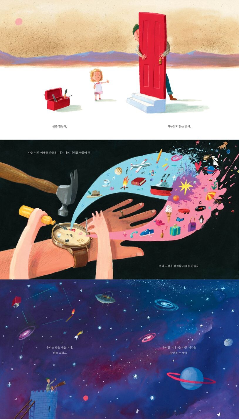 약속의 시계에 새겨진 여러 가지 사인을 보며 아빠가 꿈꾸는 미래와 딸이 원하게 될 미래를 짐작할 수 있다.