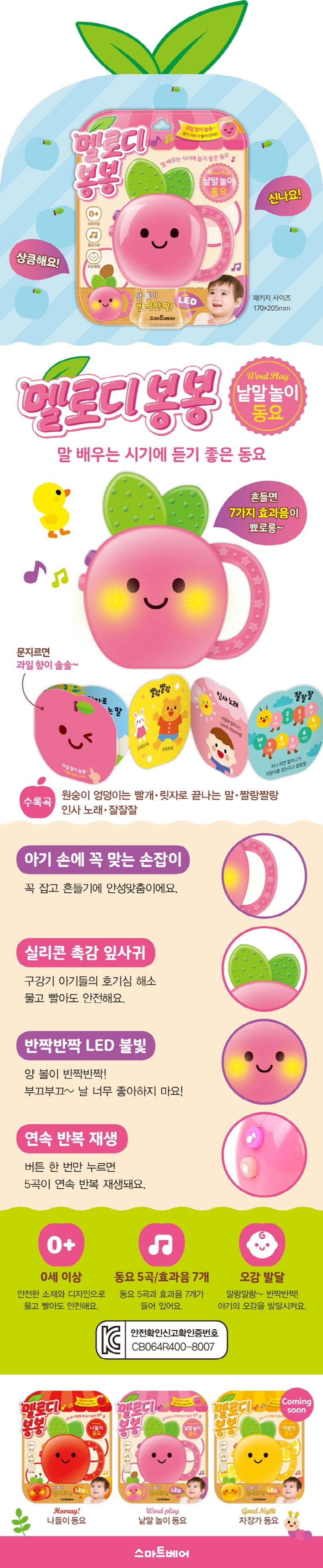 이 작가의 신간 & 인기 도서 그림작가 책마중 전체도서보기 쫑긋쫑긋 토끼 까꿍 헝겊책 30% 17,400 원 민트 봉봉 23% 12,300 원 바나나 봉봉 사운드북 23% 12,300 원 딸기 봉봉 23% 12,300 원 멜로디 봉봉 까꿍 놀이 동요 23% 11,900 원 멜로디 봉봉 자장가 동요 23% 11,900 원 멜로디 봉봉 낱말 놀이 동요 23% 11,900 원 멜로디 봉봉 나들이 동요 23% 11,900 원 작가 조원경 전체도서보기 멜로디 봉봉 낱말 놀이 동요 23% 11,900 원 멜로디 봉봉 나들이 동요 23% 11,900 원