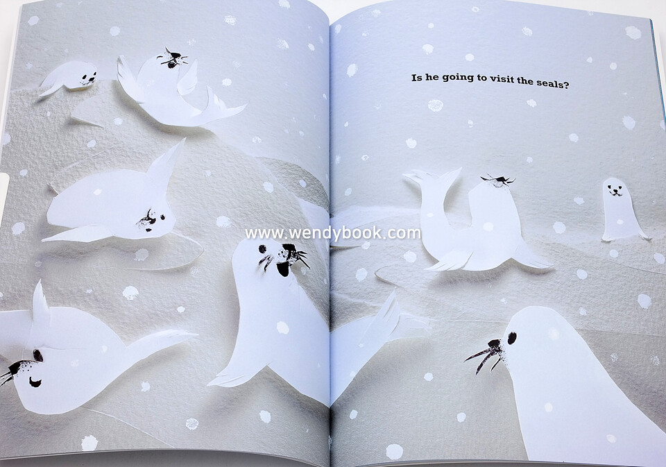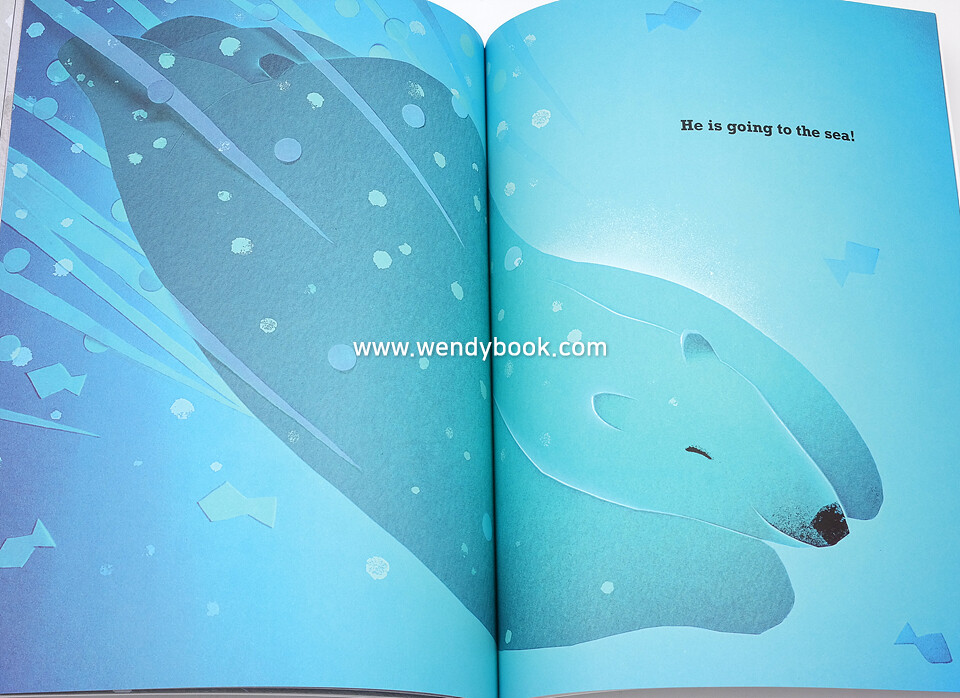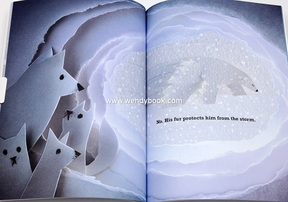 '눈'하면 자연스레 떠오르는 몇몇 친구들이 있죠. 대표적으로 북극의 폴라 베어 Polar Bear입니다. 《A Polar Bear in the Snow》는 아트지에 그림을 그리고 콜라주를 중첩시키는 방식으로 완성한, 기발한 페이퍼 아트웍스가 대단히 아름다운 그림책입니다. 북극곰과 겨울 이야기를 들려주는 작품으로, 북극의 아름다움이 한껏 배어있습니다.