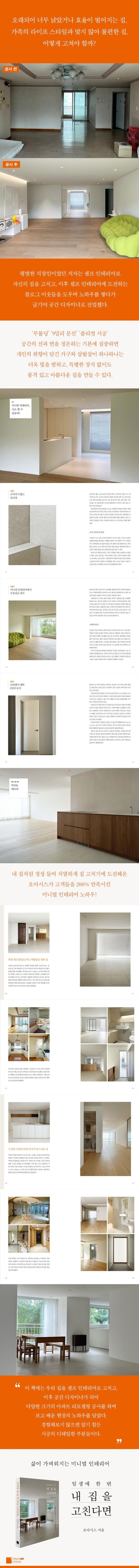 책 말미 부록에서는 다양한 크기의 아파트 시공 사례를 공사 전과 후로 비교해서 보여준다. 해당 집의 구조적인 특징을 어떻게 살렸는지, 가족들의 라이프 스타일을 어떻게 공간에 반영했는지 보여줘 흥미롭다.