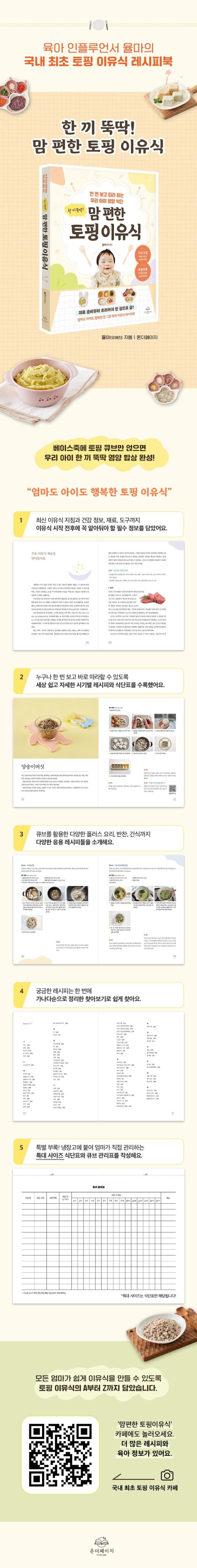 스트레스 없이 행복한 이유식을 꿈꾼다면 이 책을 선택하자. 저자의 토핑 이유식 노하우를 담은 이 책은 요리 초보 엄마도 쉽고 편한 토핑 이유식의 세계로 안내할 것이다.