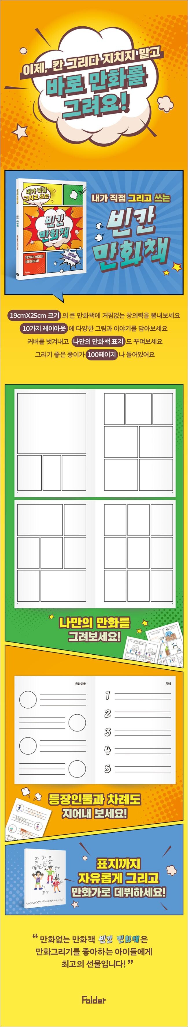 - 19cmX25cm 크기의 큰 만화책에 거침없는 창의력을 뽐내보세요