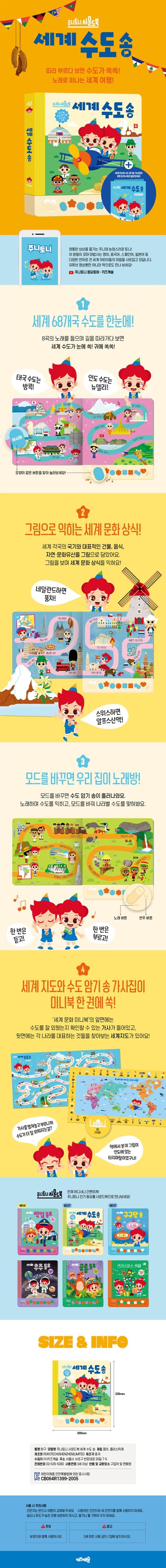 호기심 많은 돌직구 소녀, 주니와 능청스러운 해결사 소년, 토니가 들려주는 수많은 콘텐츠는 우리나라뿐만 아니라, 영어중국어스페인어인니어 등 다양한 언어로 전 세계 어린이들의 마음을 사로잡고 있습니다. 그중 중독성 강한 멜로디와 알찬 내용으로 이미 수많은 어린이들의 필수 곡이 된 ‘세계 수도 송’! 이제 사운드북으로 만나 보세요.