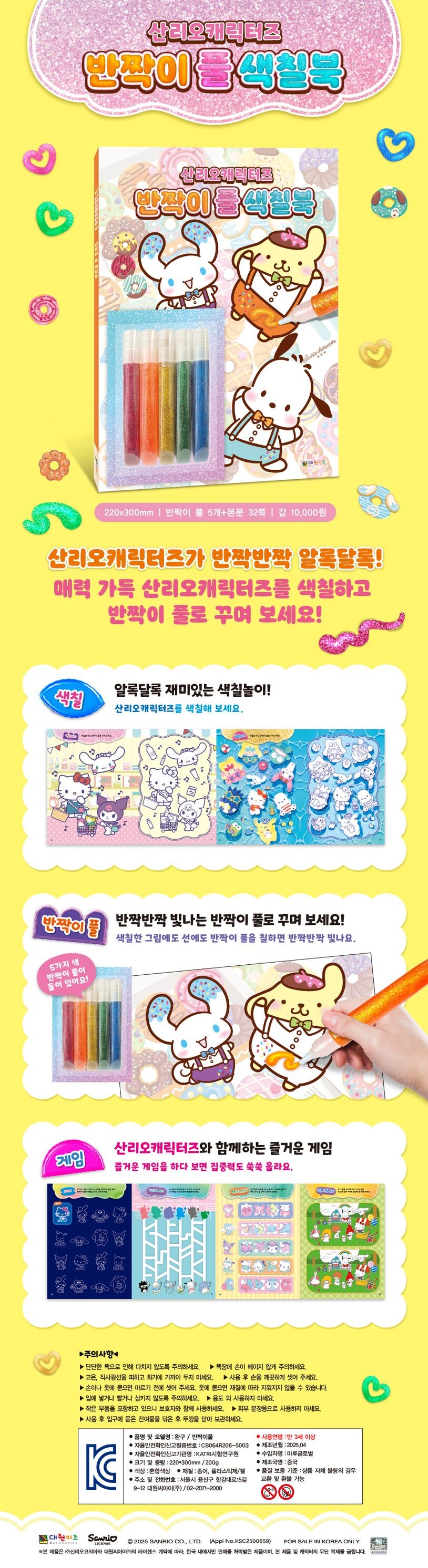 • [현재상품] 산리오캐릭터즈 반짝이 풀 색칠북