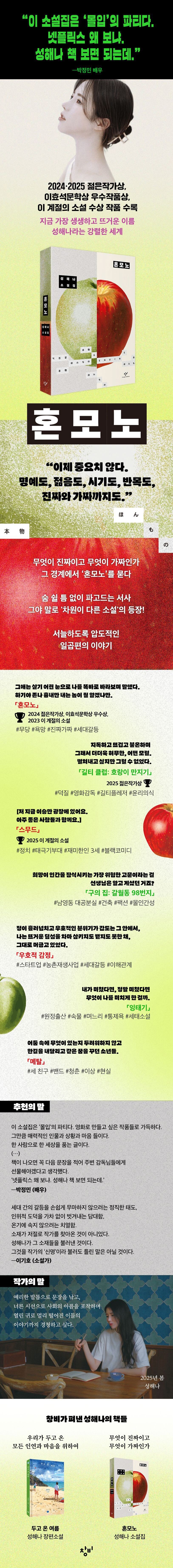 끝없이 ‘진짜’와 ‘가짜’의 사이를 오가며 ‘혼모노’란 무엇인지 질문을 던지는 성해나는 결코 매끈하고 부드러운 구(球)와 같은 정답을 길어올리지 않는다. 『혼모노』가 멈춰 서는 곳은 오히려 진짜와 가짜를 가르는 경계의 울퉁불퉁하고 위태로운 모서리 위이다. 완벽한 정답이나 오답, 완전한 선인이나 악인이 없는, 거창한 결별도 손쉬운 봉합도 없는 이 “차마 삼키지도 뱉지도 못”(240면)할 다면체(多面體)의 대답 앞에서 우리가 할 수 있는 일은 “‘진짜’에 대한 탐구이되, 진실하게 걸어나가고자 하는 그 일로부터 결코 힘을 빼지 않”(해설)고 한국문학의 내일을 열어나갈 성해나의 믿음직한 걸음을 따라 그 모호한 경계를 계속해서 걷고 또 걷는 일일 것이다.
