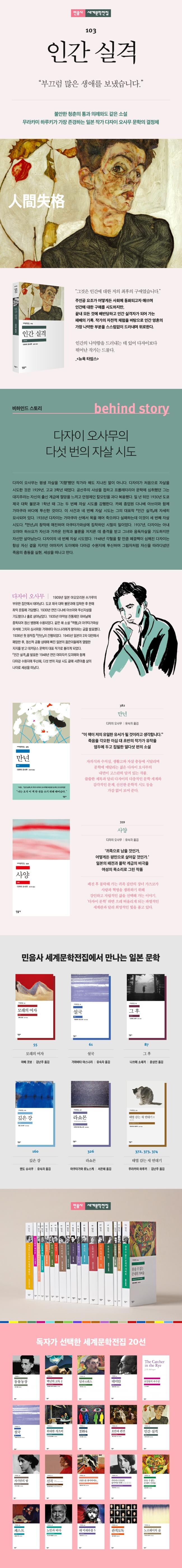 1948년 서른아홉의 나이로 요절하여 일본 사회에 큰 파장을 남긴 일본 현대 문학의 대표적 작가 다자이 오사무의 『인간 실격』이 민음사에서 출간되었다. 오직 순수함만을 갈망하던 여린 심성의 한 젊은이가 인간들의 위선과 잔인함에 의해 파멸되어 가는 과정을 그린 「인간 실격」은 “인간의 나약함을 드러내는 데 있어 다자이보다 뛰어난 작가는 드물다.”(《뉴욕 타임스》)라는 평가를 받으며 전후 일본 젊은이들의 열렬한 지지를 받았다. 그리고 함께 실린 「직소」에서는 유다의 인간적인 측면을 다자이만의 독특한 시선으로 새로이 조명하고 있다.