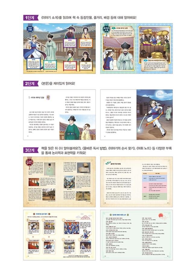 3단계: 책을 읽은 뒤, <더 알아볼까요?>, <올바른 독서 방법>, <이야기의 순서 찾기> 등의 다양한 부록을 통해 생각을 정리하고 문해력과 사고력, 표현력을 키워요!