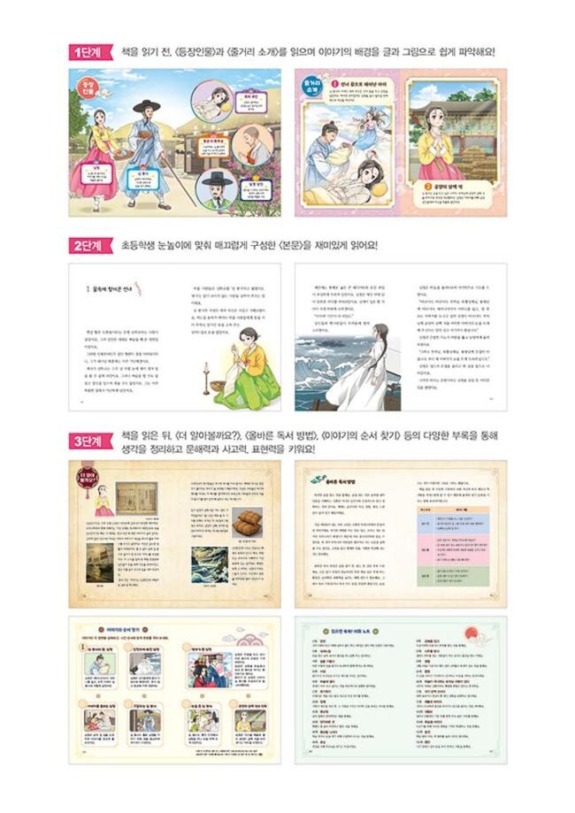 3단계: 책을 읽은 뒤, <더 알아볼까요?>, <올바른 독서 방법>, <이야기의 순서 찾기> 등의 다양한 부록을 통해 생각을 정리하고 문해력과 사고력, 표현력을 키워요!