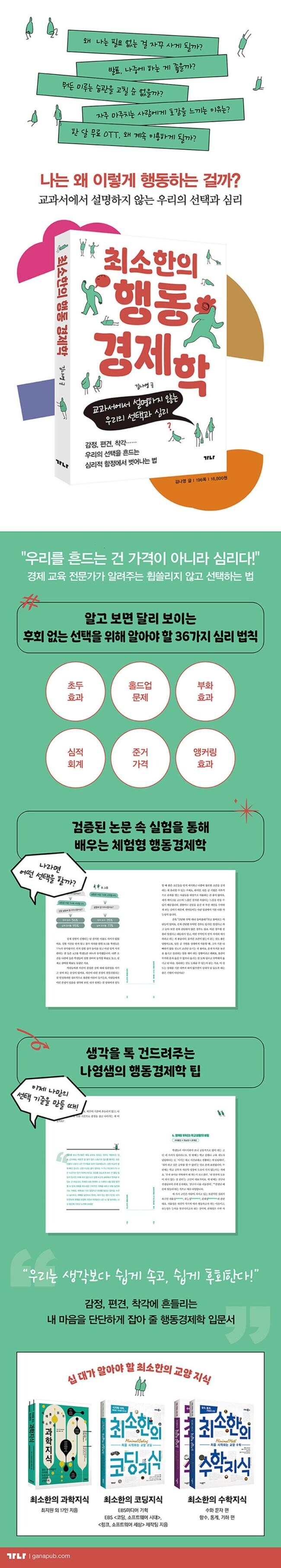 〈최소한의 행동경제학〉 바로 이런 익숙한 이야기들로 시작한다. ‘경제학=숫자, 돈”이라는 고정관념을 깨고, “긍정적인 첫인상을 남기려면 어떻게 해야 할까?”, “아무리 생각해도 답이 안 떠오를 때는 어떻게 할까?”, “큰 선물 한 번과 작은 선물 여러 번 중 뭐가 더 나을까?” 등 소비뿐 아니라 관계, 대화, 목표, 선택, 행복 등 우리가 살면서 마주하는 일상으로 행동경제학을 끌고 들어온다. 또한 아이디어가 떠오르지 않는다는 고민에는 부화 효과를 통해 잠시 쉬어가는 시간을 제안하고, 용돈을 모으고 싶다는 고민에는 ’비상금‘이라는 이름을 붙여 심적 회계 효과를 유도하는 등 각 이야기에 맞는 행동경제학 이론을 대안으로 제시한다. 고민에서 이론으로, 다시 실생활 속 실천으로 이어지는 이 흐름은 단순한 이론 학습을 넘어, 나를 둘러싼 세상을 새롭게 이해하는 시각을 길러 주고, 주변에 흔들리지 않는 단단한 마음을 가질 수 있게 도와 줄 것이다.