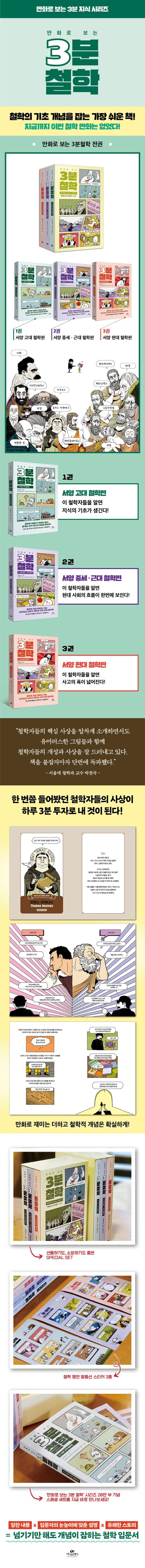 인문학과 철학의 중요성이 강조되는 시대에 정작 어디부터 공부하면 좋을지 몰라 막막해하는 사람들을 위한 책, 『만화로 보는 3분 철학』 시리즈가 20만 부 기념 세트로 출간되었다. 『만화로 보는 3분 철학: 서양 고대 철학편』, 『만화로 보는 3분 철학: 서양 중세·근대 철학편』, 『만화로 보는 3분 철학: 서양 현대 철학편』 총 3권으로 구성했으며, 철학 스티커 3종과 선물하기 좋은 박스 세트를 만나볼 수 있다.