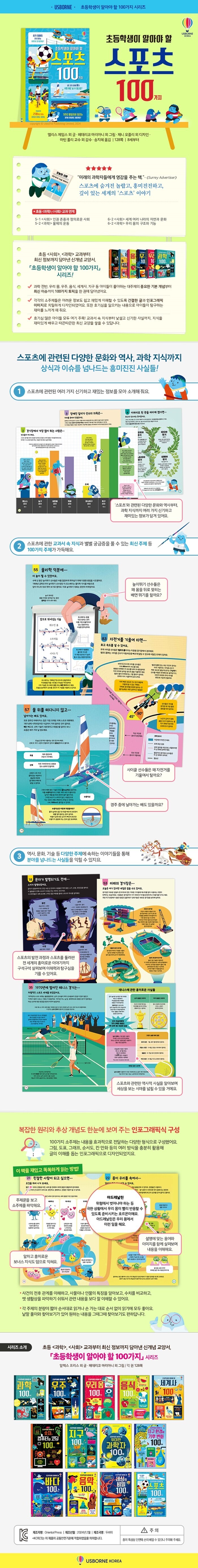 끝없는 호기심을 가진 아이들에게 세상의 비밀을 알려 주는 어린이 교양서 「초등학생이 알아야 할 100가지」 시리즈의 신간 ‘스포츠’ 편이 출간되었어요. 이 시리즈는 초등 <과학>, <사회> 교과에서 다루는 개념과 체육 시간에 필요한 상식은 물론, 꼭 알아야 할 지식을 더욱 폭넓게 탐구할 수 있도록 중요한 기본 개념부터 최신 이슈까지 100가지 토픽을 뽑아 한 권에 담아냈어요. 각각의 토픽은 어려운 정보도 쉽고 재밌게 이해할 수 있도록 간결한 글과 인포그래픽을 활용한 이미지로 치밀하게 디자인되었어요. 교과서 속 내용부터 낯설고 신기한 사실까지, 지식을 재미있게 배우고 따끈따끈한 최신 교양을 쌓을 수 있답니다.