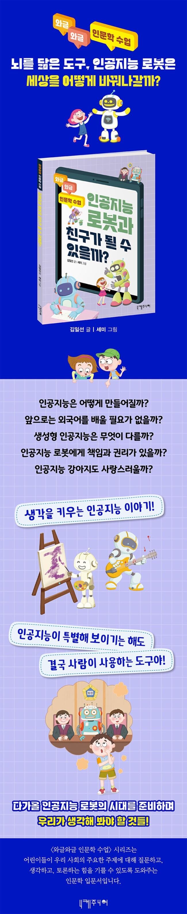 친구가 되려면 우선 상대에게도 감정이 있어야 해. 강아지와 대화할 수는 없어도 충분히 친구 같다고 느낄 수 있지. 그렇다면 감정을 가진 인공지능 로봇이 등장한다면 과연 친구가 될 수 있을까?_84쪽