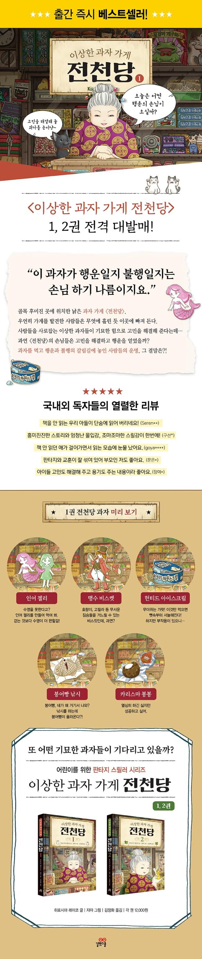 [이상한 과자 가게 전천당]은 일본에서 2013년에 1권이 첫 출간되어 6년 간 총 11권이 나왔다. 후속권이 나올 때마다 판타지 분야에서 1위를 하며 현재 85만 부 이상이 판매되었다. 또한 일본 어린이들이 뽑은 최고의 책(포플라사 주관)에 [추리 천재 엉덩이 탐정] 시리즈, [있으려나 서점]과 함께 나란히 선정되었다. 게다가 작가 히로시마 레이코는 주니어 판타지 대상을 수상한 만큼 작품성과 필력을 인정받은 작가이다.