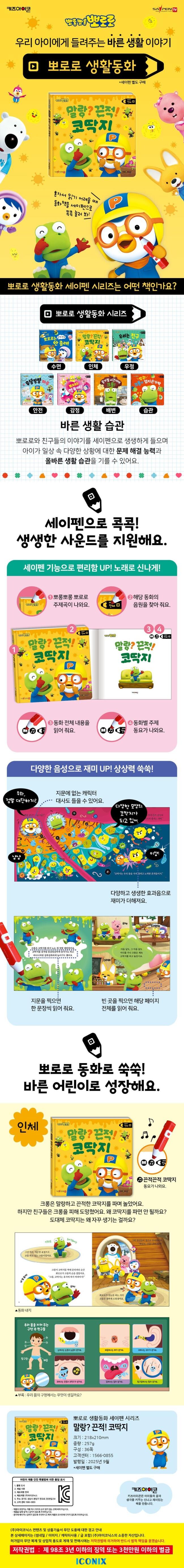 • [현재상품] 말랑? 끈적! 코딱지 - 뽀로로 생활 동화 시리즈 (보드북)