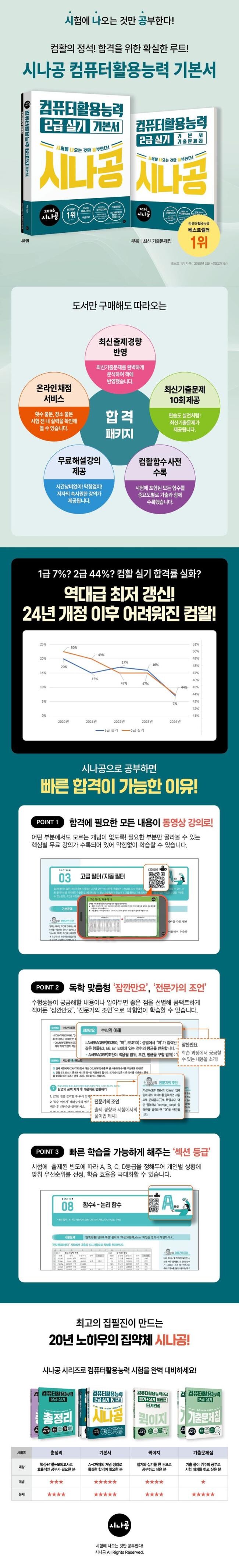 A. 시나공 앞에 연도가 붙는 이유는 전년도 시험 경향을 완벽하게 반영했음을 나타내기 위해서입니다. 시나공은 멈춰있지 않고 매년 변화하는 시험 문제와 유형, 출제 경향에 맞춰 같이 나아갑니다.