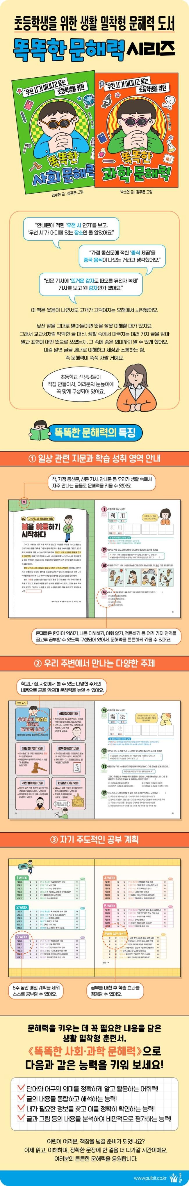 읽고, 이해하고, 생각하고, 표현하는 능력은 모든 학습의 기초이자 평가의 핵심입니다. 〈똑똑한 문해력〉 시리즈는 교과 지식과 실생활을 유기적으로 연결하면서, 아이가 세상을 스스로 해석하고 자신 있게 사고하며 표현하는 힘을 기를 수 있도록 돕습니다.