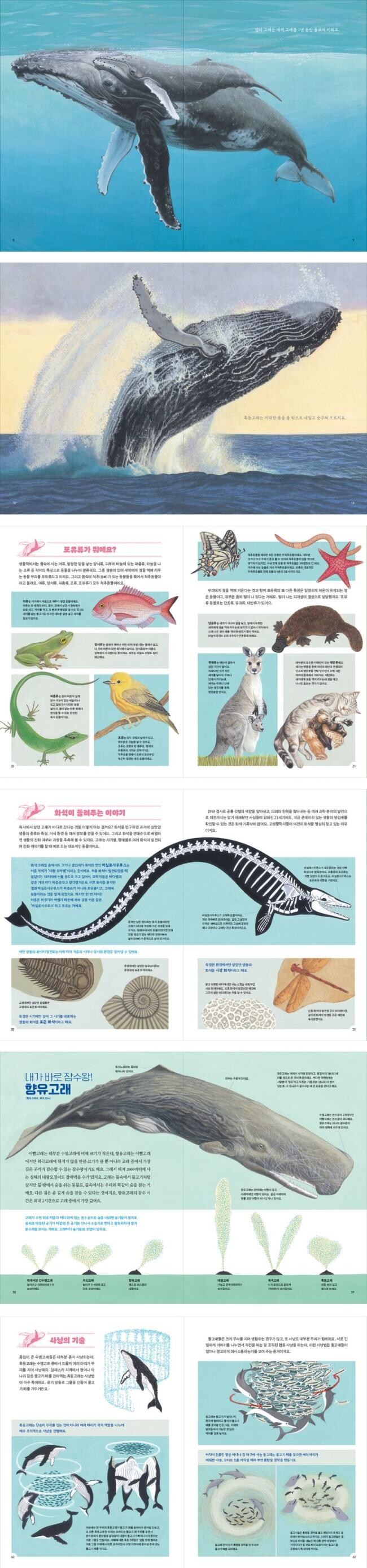 고래는 배를 따라 함께 뛰고, 노래하고, 하트 모양의 물을 뿜어내고, 우리를 보고 웃어 주기도 하는 놀랍고도 신기한 동물이지만, 고래가 더욱 특별한 이유는 지구와 생명의 진화에 대한 다양한 이야기를 들려주기 때문일 거예요.