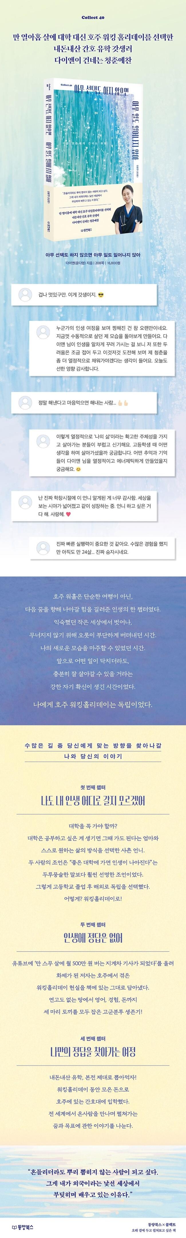 돌아보면 모든 고난과 경험이 결국엔 저자를 성장하게 했다. 내 인생을 사는 사람은 나 자신이기에 모든 선택도 자신의 몫이다. 남들과 다른 길을 가는 것을 망설이는 청춘에게, 그까짓 거 한번 해봐도 된다고 힘찬 응원을 건넨다.