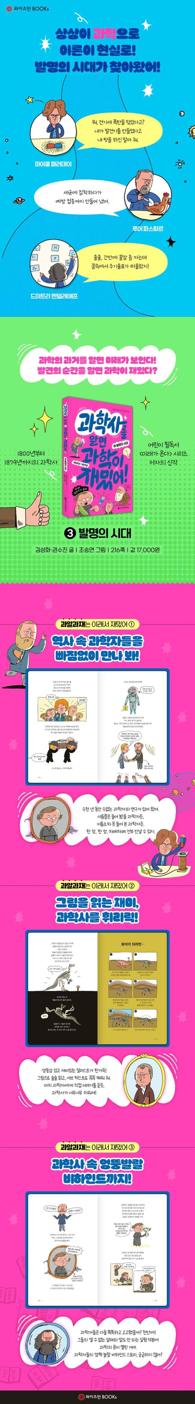 <과학사를 알면 과학이 재밌어!> 3권은 과학과 기술이 혁신적 발명과 함께 급격히 발전한 19세기, 인류의 삶을 완전히 바꿔 놓은 ‘발명의 시대’를 다룬다. 증기 기관이 세상을 움직이고, 전기가 어둠을 몰아내던 시기, 과학자들은 눈앞의 세상을 호기심의 눈으로 바라보며 세상을 이해하는 새로운 방법을 ‘발명’했다.