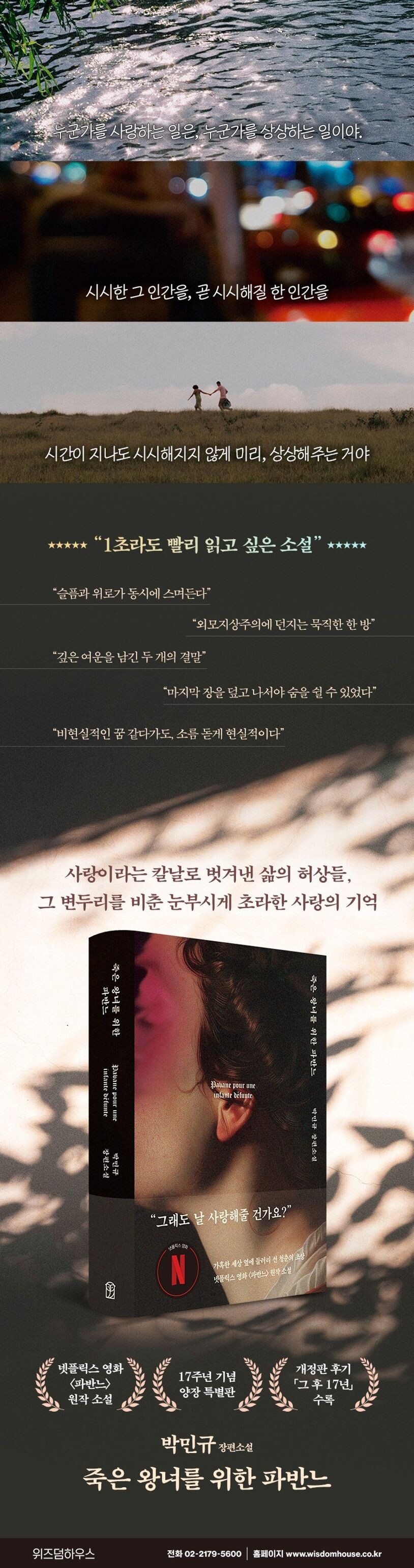 2008년부터 6개월간 온라인서점 예스24 블로그에 연재되었던 『죽은 왕녀를 위한 파반느』는 발표 초기부터 ‘박민규의 색다른 연애소설’로 회자되며 독자들의 뜨거운 관심을 받았다. 못생긴 여자와 그런 그녀를 사랑했던 한 남자의 이야기를 20대 성장소설의 형식으로 그려낸 이 작품은 작가 스스로 ‘80년대 빈티지 신파’라 일컬을 만큼 내용이나 스타일에서 큰 변화를 선보였다. 자본주의 시스템이 본격적으로 가동되기 시작한 80년대 중반의 서울을 무대로 한 이 소설엔 평범한 인간관계가 어려울 정도로 못생긴 여자와, 잘생기고 번듯하지만 부모에게 버림받은 트라우마를 공유한 두 명의 청년이 등장한다. 백화점 아르바이트 현장에서 만난 이들 세 사람은 서로의 결핍과 아픔을 거울처럼 비추며 조심스럽게 가까워진다. 상처받은 인간의 내면에 그 어느 작품보다 깊이 파고드는 이 소설을 통해, 작가는 부조리와 편견 가득한 사회의 장벽 앞에서 절망할 수밖에 없었던, 그래서 무참히 사회의 바깥으로 추방당했던 우리 모두의 첫사랑의 기억을 들추어낸다.