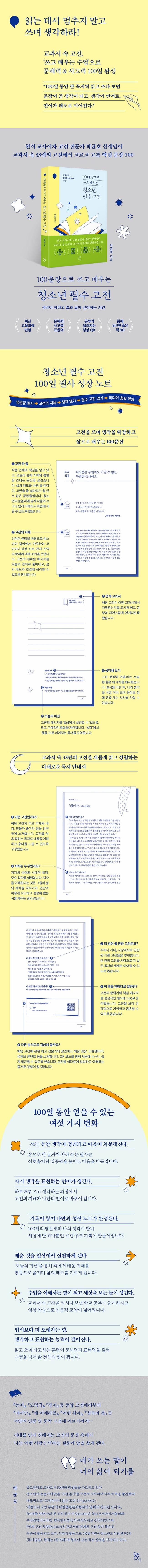 이러한 구성은 국어 수행평가에서 강조되는 문해력, 사고력, 표현력을 동시에 기르는 것은 물론, 고전 읽기의 방법을 모르던 학생들, 독서감상문과 논술 준비로 고민하는 학생들 모두에게 유용한 도구가 될 것이다. 이뿐만 아니라 교사에게는 수업의 부교재로, 학부모에게는 자녀와 함께하는 고전 공부의 매개로 활용도가 높다. 100일 동안 고전의 언어를 자신의 언어로 바꾸어 쓰는 이 과정을 통해 학생들은 읽고, 쓰고, 생각하며 ‘나만의 문장’을 만들어 가게 된다. 100일 후, 그 문장들이 쌓여 한 사람의 내면을 단단하게 채우는 힘이 되고, 그것이 바로 진정한 고전 공부의 의미가 아닐까.