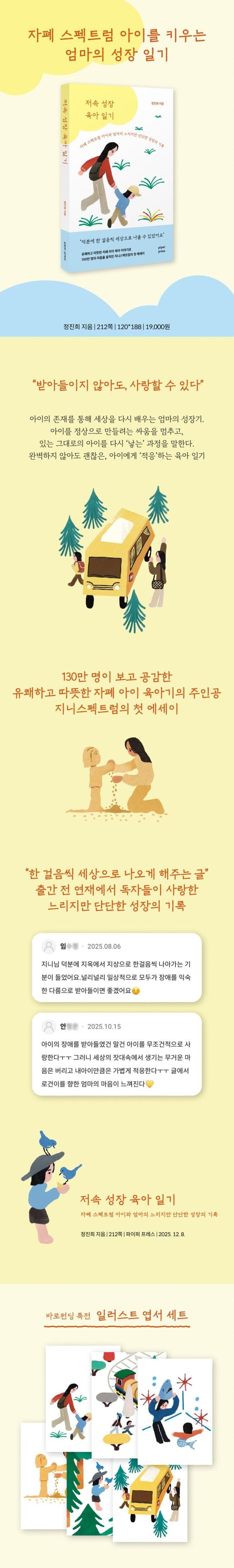 『저속 성장 육아 일기』는 자폐 아이를 키우는 엄마의 이야기를 넘어, 한 사람이 세상과 다시 연결되어 가는 성장의 기록이다.