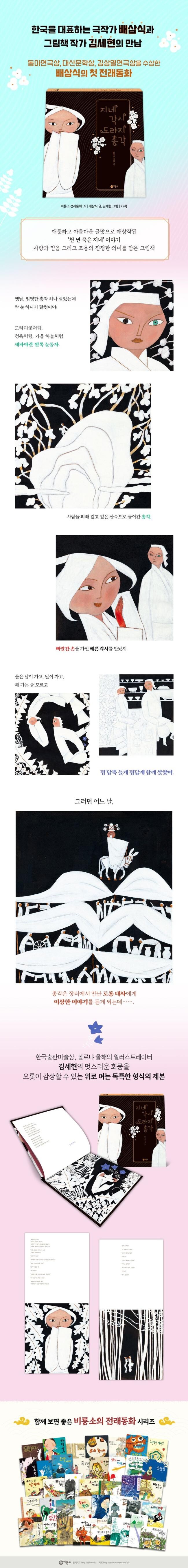 그 울음 덕에 둘의 원한은 녹아 흘러내린다. 토룡대사는 간곳없고, 지네 각시는 점점 작아져 풀숲으로 사라진다. 총각은 지네 각시를 다시 만날 수 있을까? 3·4 어구 말의 리듬을 타고 긴 서사시를 읽는 듯한 호흡이 더 잔잔하게 다가온다. 말에서 말로 전승된 우리 옛 동화답게 말이 주는 서사가 아름다운 책이다.