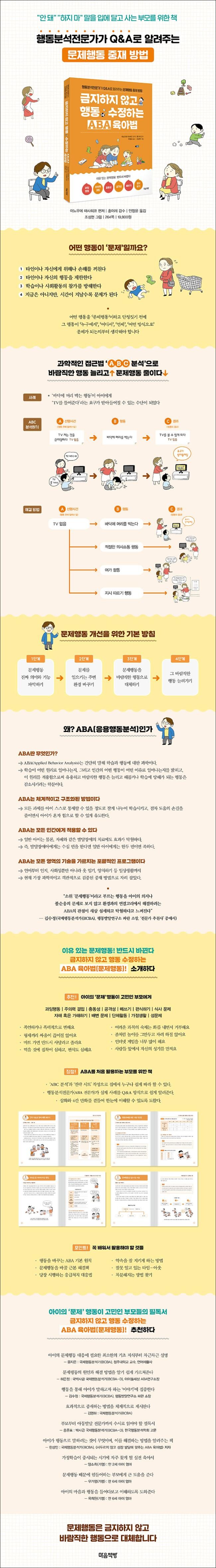 이 책은 이 ABA 기법의 일환인 ABC 분석을 통해 문제가 되는 아이의 행동을 부모가 집에서 금지하지 않고 수정할 수 있도록 도와준다.