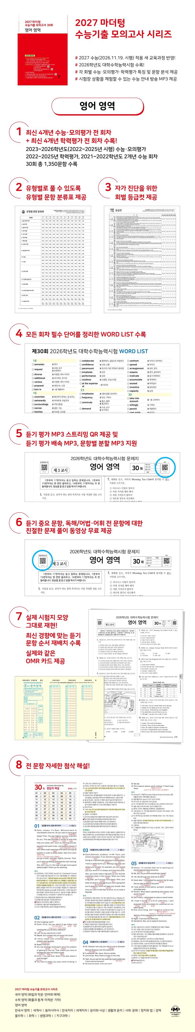 2027 마더텅 수능기출 모의고사 30회 영어 영역 (2026년) Paperback