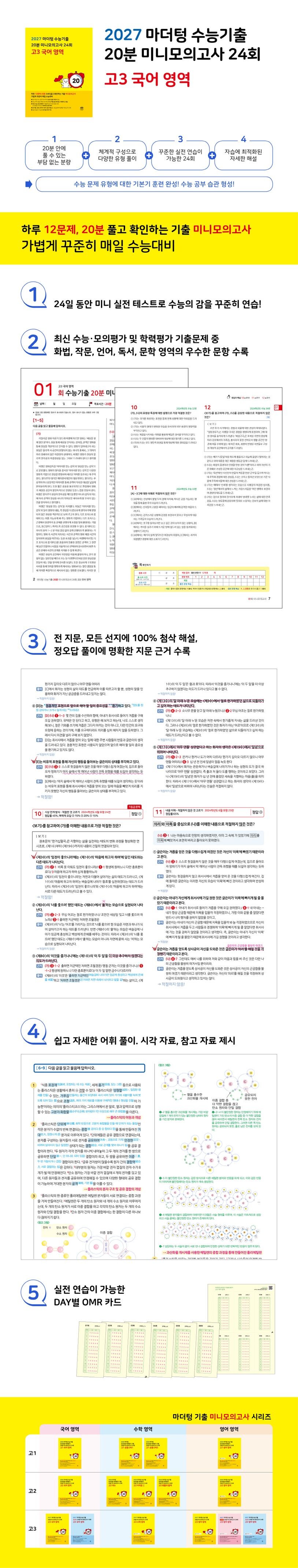 • [현재상품] 2027 마더텅 수능기출 20분 미니모의고사 24회 고3 국어 영역 (2026년)
