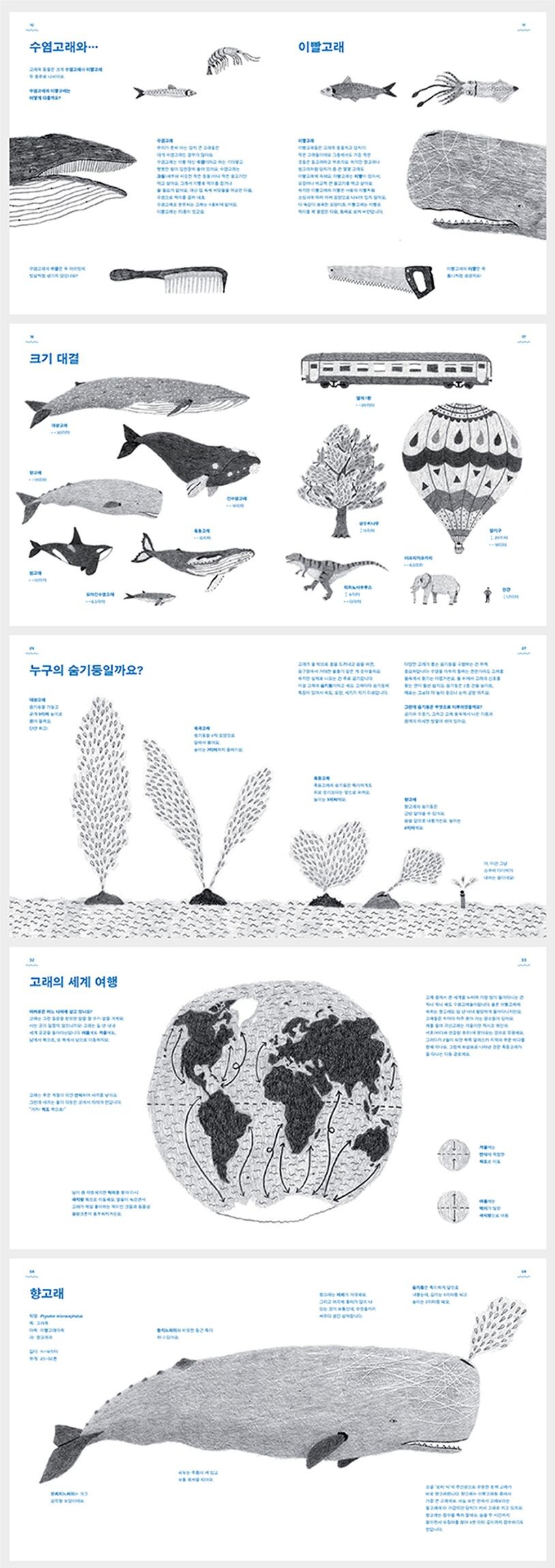 연필 드로잉과 세련된 그래픽으로 완성된 고래의 세계