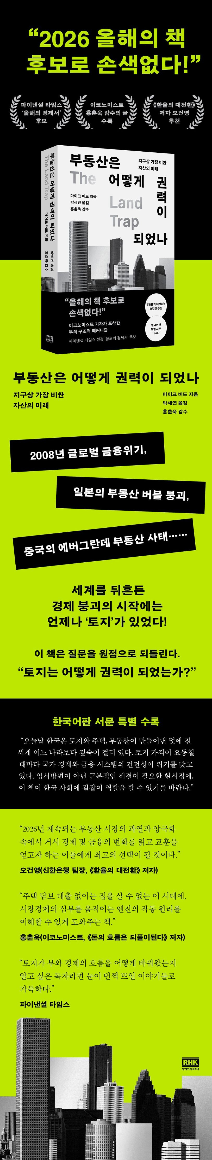 이코노미스트 경제 전문기자 마이크 버드는 《부동산은 어떻게 권력이 되었나》에서 이 문제를 단기적인 전망이나 정책 논쟁이 아닌, 훨씬 큰 시각에서 다룬다.