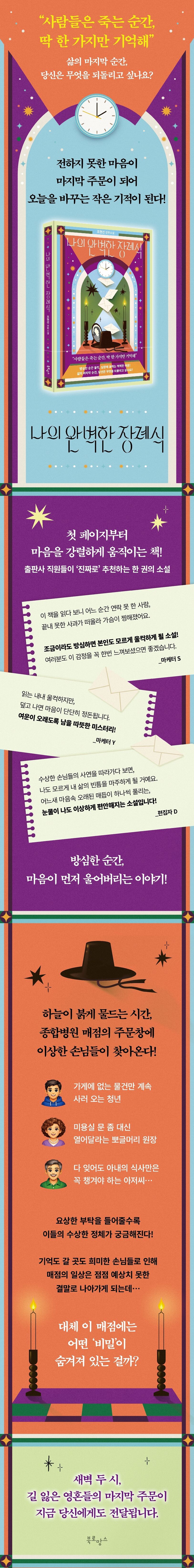 매점에는 없는 물건을 찾고 생뚱맞은 부탁까지 하는 손님들을 거절하지 못해 하나씩 해결해 나가는 동안, 이 모든 것이 이승을 떠나지 못한 손님들의 마지막 염원이었음을 깨닫게 된 것이다.