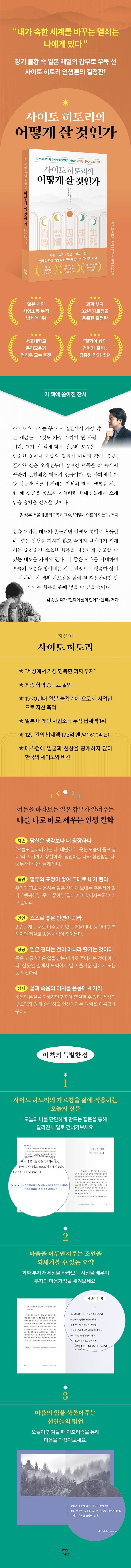 『사이토 히토리의 어떻게 살 것인가』에는 힘겹게 매일을 버텨내는 이들이 더 나은 내일을 맞이할 수 있도록 도와주는 조언이 가득 담겨 있다.