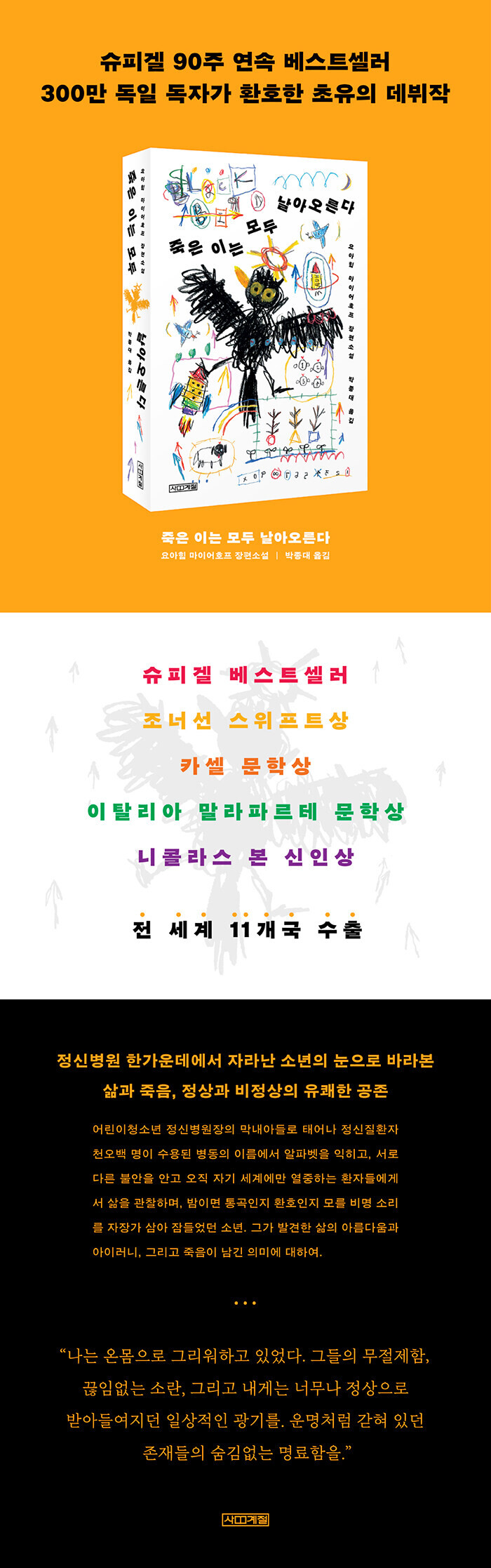 『죽은 이는 모두 날아오른다』는 요아힘이 갓 학교에 들어간 어린 시절부터 혼란스러운 청소년기, 청년이 되어 집을 떠나기까지의 삶을 담은 소설이다. 누구에게나 ‘집’이 세계의 전부이던 시기가 있고 우리 모두는 그 곳을 떠났기에 오늘 이 자리에 있다. 집이 전부이던 시기, 즉 ‘유년’은 과거임에도 어딘가로 휘발되어 사라진 것이 아니라 인간의 내면에 깊이 뿌리내리고 있다. 작가는 자신의 유년을 있는 그대로 회고하되, 감상에 빠지지 않는다. 그렇기에 어린 그에게는 평범했지만 돌아보면 삶의 가장 눈부신 순간이, 결코 놓쳐서는 안 되었던 감정이, 오히려 어른이 된 지금에야 보이는 커다란 의미가 독자에게도 가닿는다. 그 순간, 유년을 바라보는 일은 단순한 감상을 넘어 삶의 통찰이 된다.