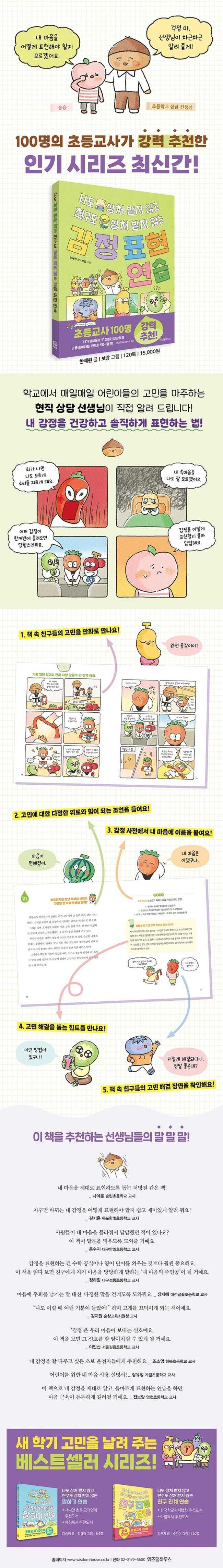 이 책을 쓴 한혜원 작가는 초등학교 상담 교사이자 사회 정서 교육 전문가로, 10년 넘게 어린이들의 고민을 귀담아들어 왔다. 매일 교실에서 친구를 만나고 선생님과 관계를 맺는 일상에서 아이들은 어떤 고민을 품었을까? 다양한 고민의 중심에는 바로 ‘감정’이 있었다.